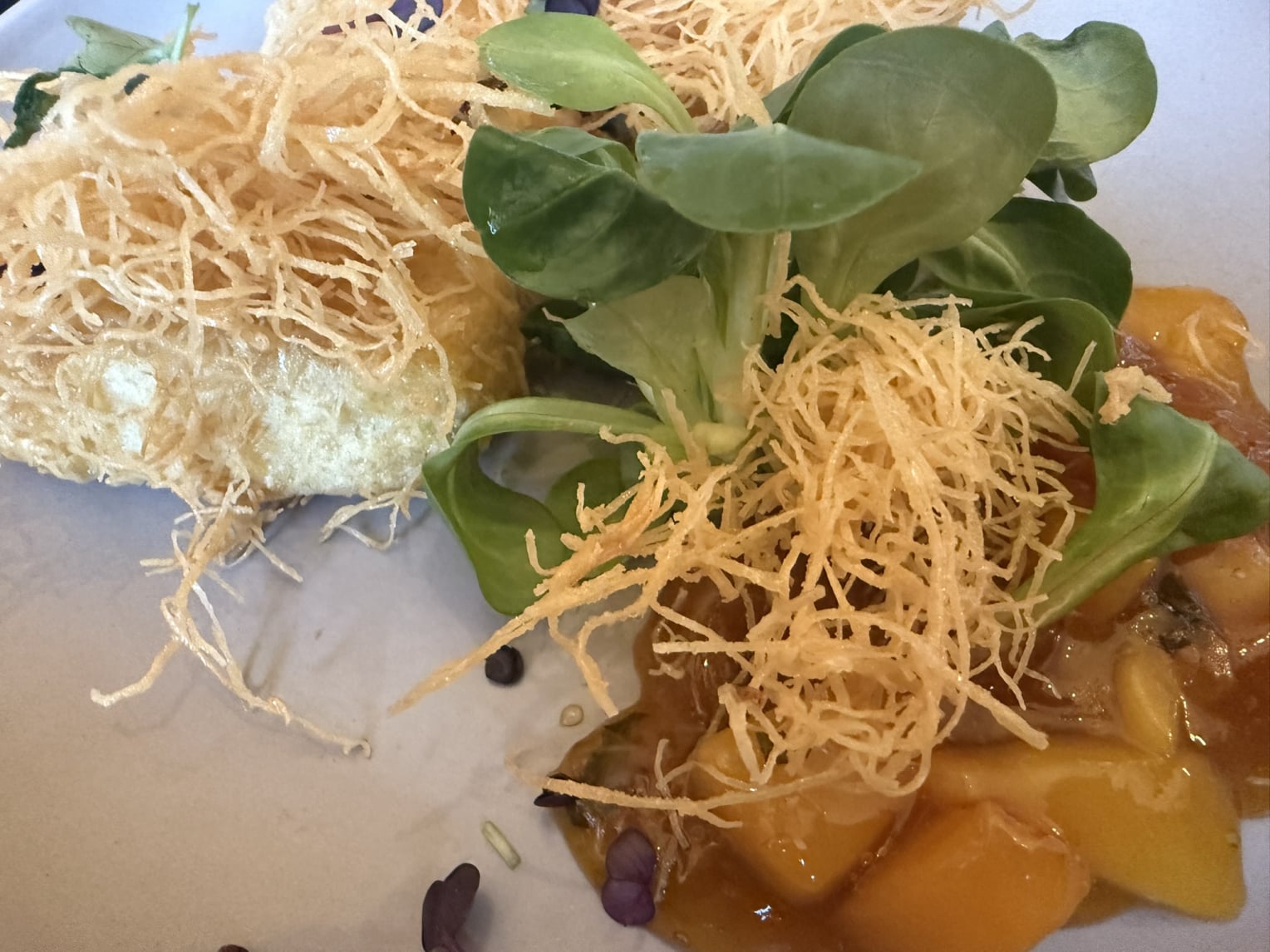 Knusprig panierter Käse im Engelshaarmantel mit Pfirsich‑Aprikosen‑Chutney | 16,9